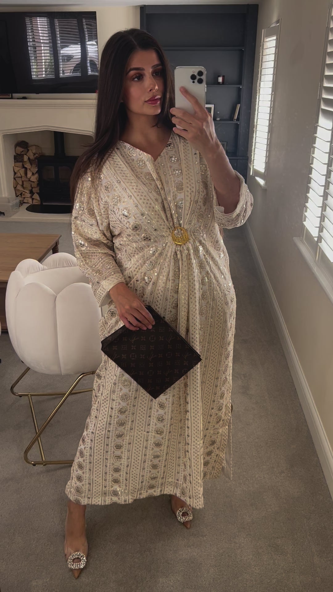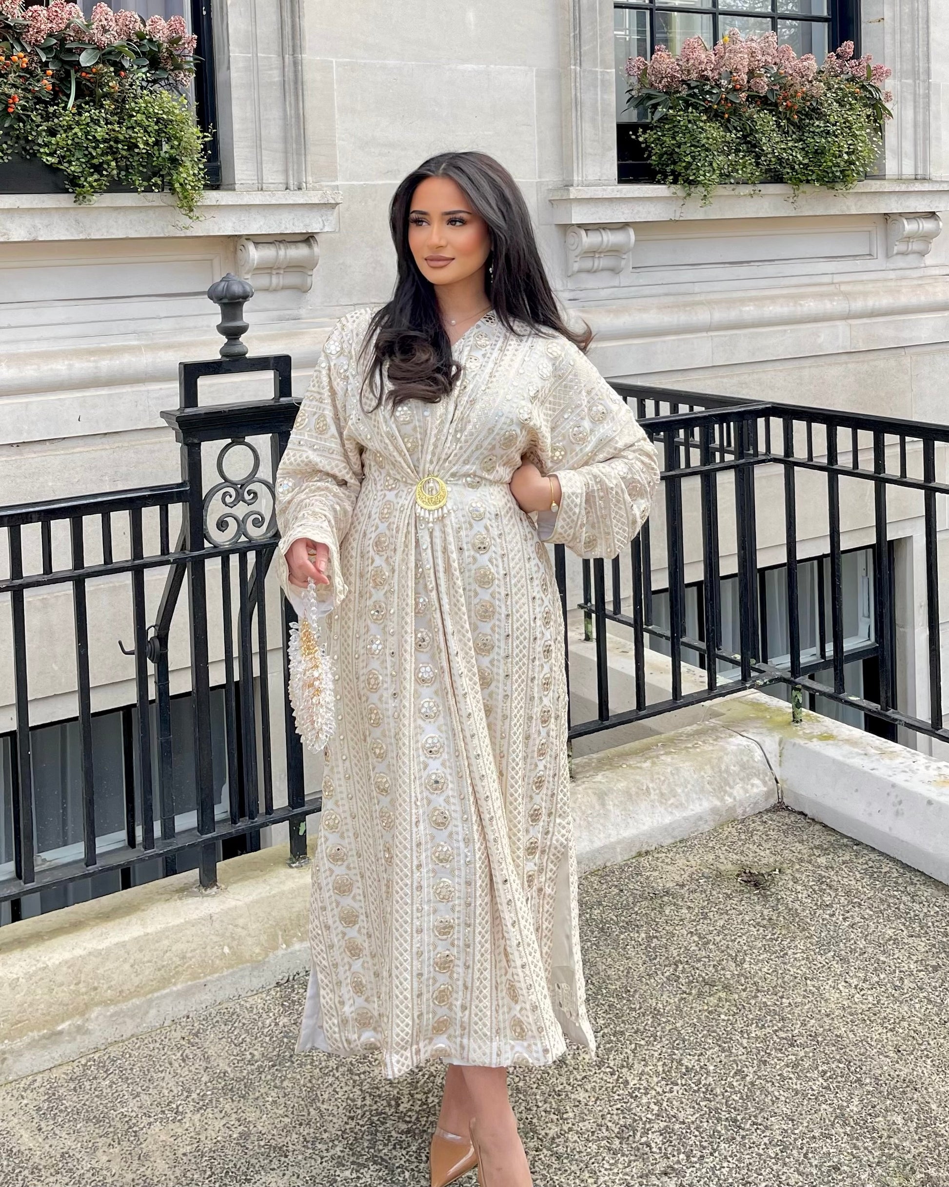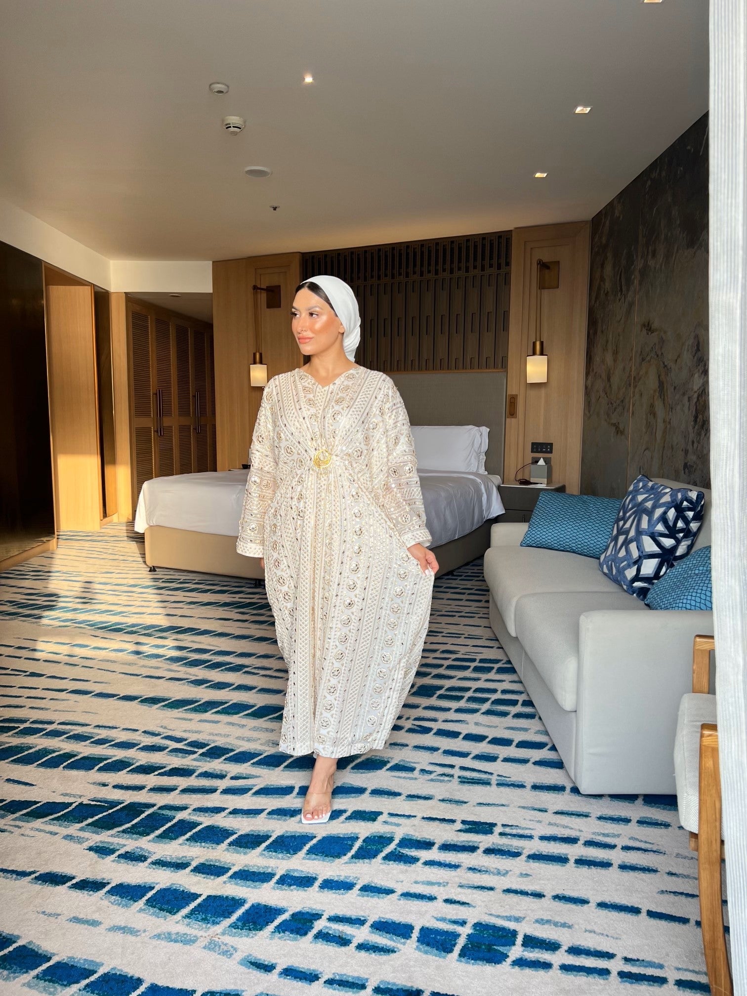 Discover the Middle Eastern Modest Kaftan Infused with Pakistani Elegance.