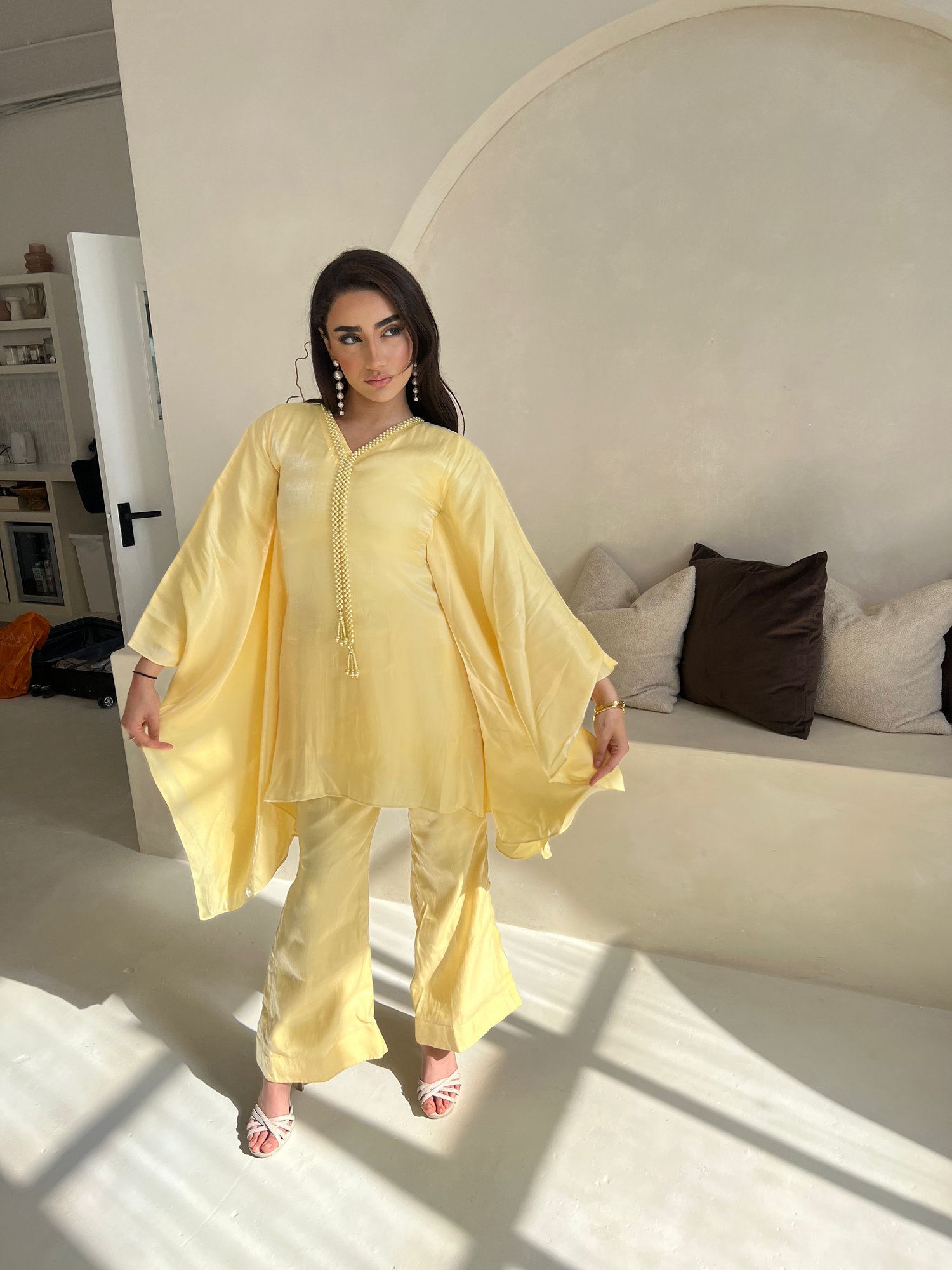 Modern peplum-cut pants for a stylish silhouette. Made from matching lava silk for a coordinated finish