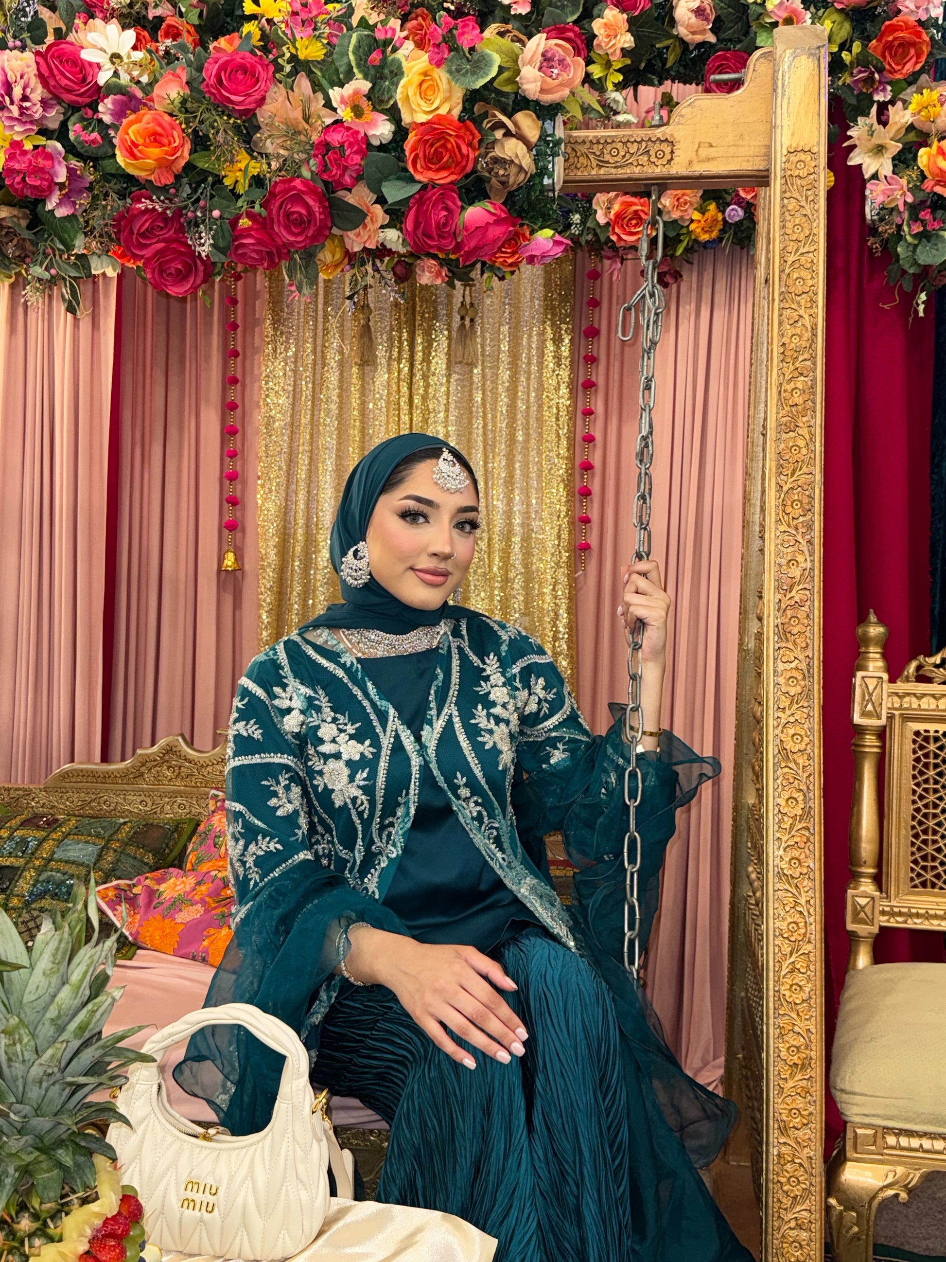 Elevate your elegance with our exquisite Pakistani 3-piece jacket style outfit. Immerse yourself in timeless luxury and grace.