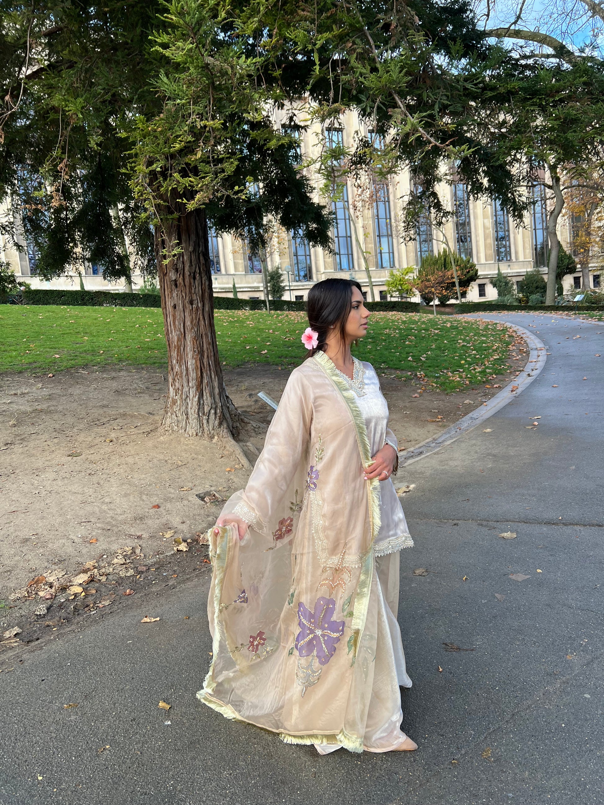 Each hand-painted dupatta is a labor of love, taking hours of meticulous artistry to create. From intricate designs to vibrant strokes, every detail tells a story of craftsmanship and dedication.