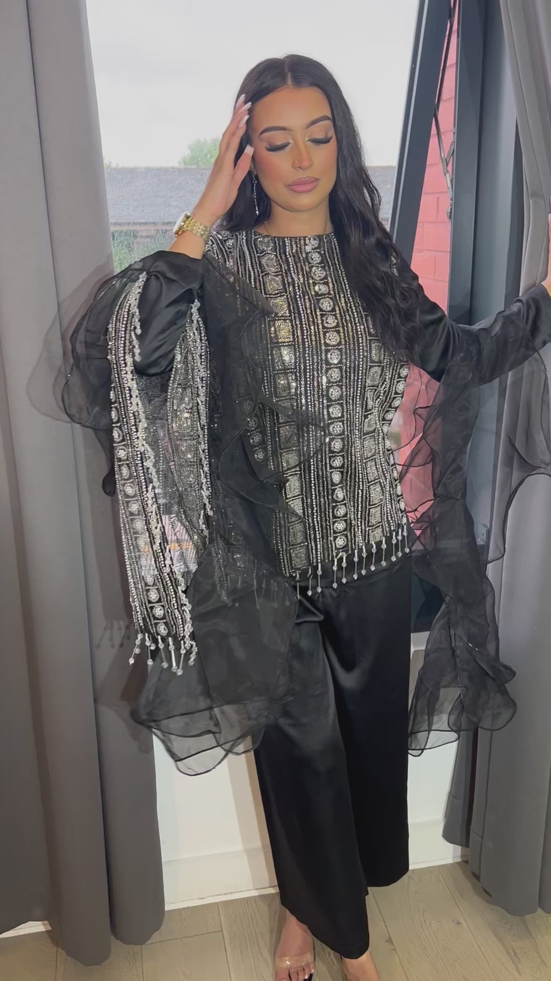 Elevate your elegance with our exquisite Pakistani cape suit, meticulously crafted with luxurious fabrics and intricate detailing. Make a statement that resonates sophistication and cultural allure.
