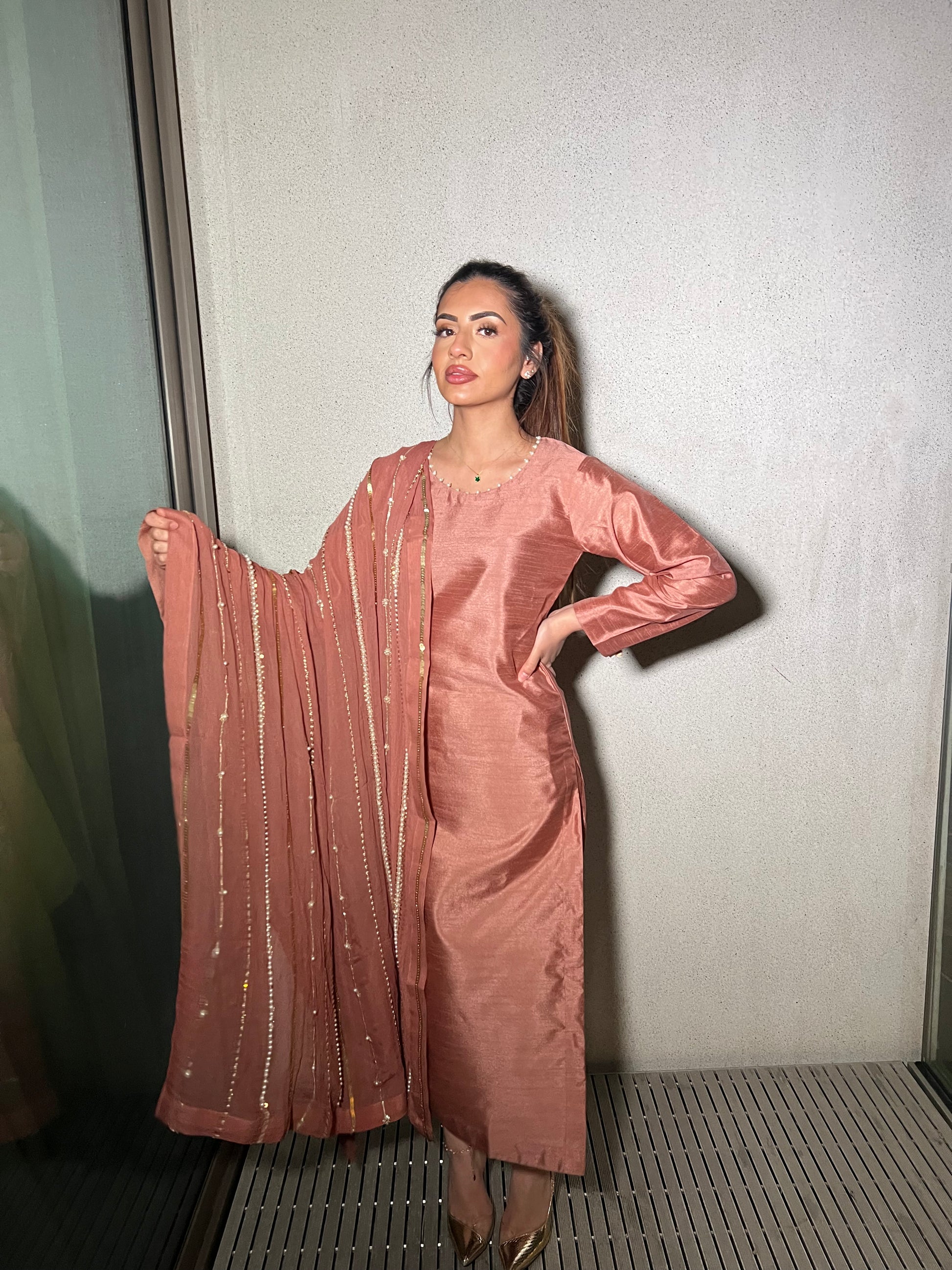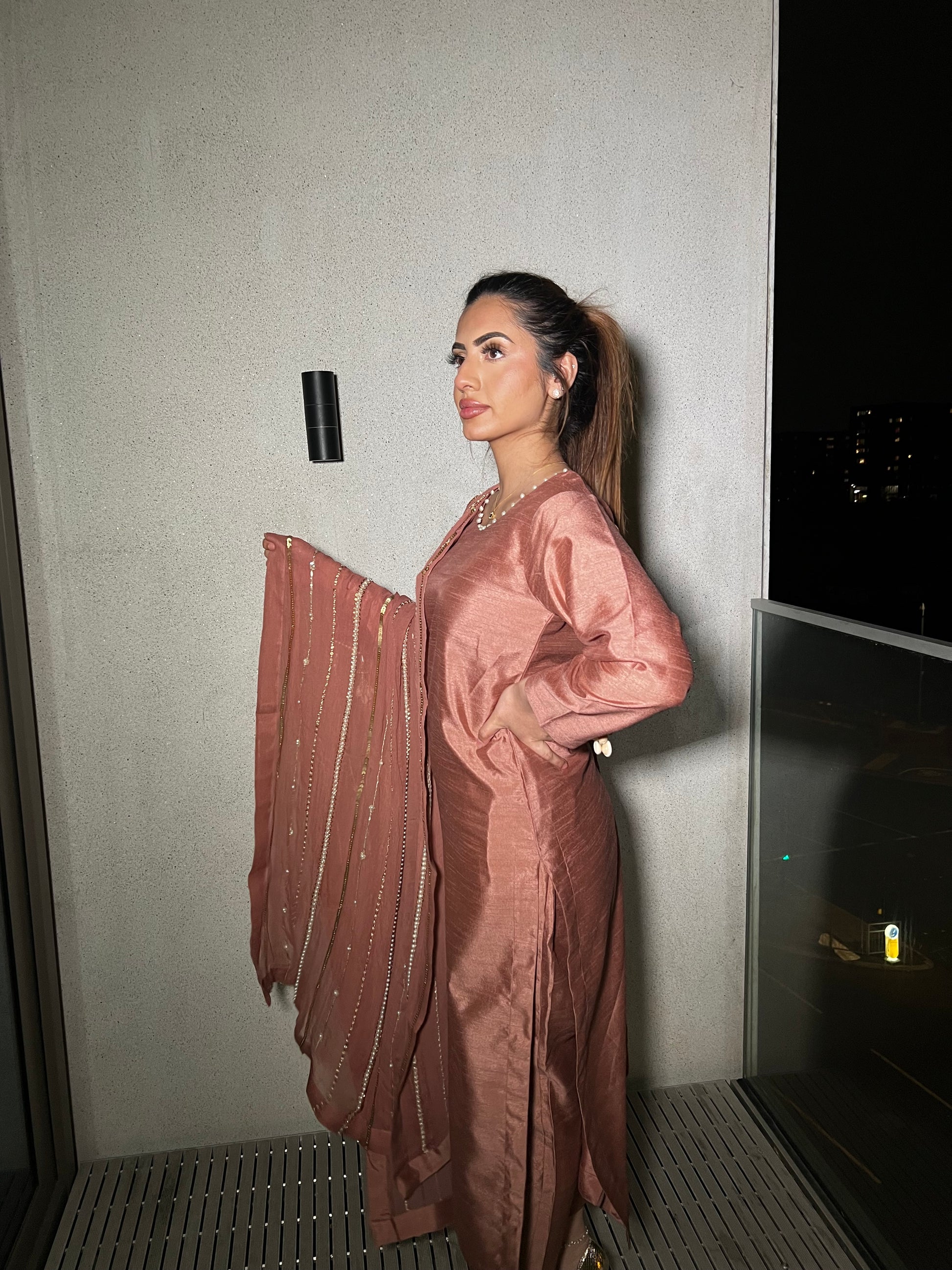 Elevate your elegance with our exquisite Pakistani silk suit – three pieces of pure luxury, tailored to perfection. Make a statement wherever you go with timeless style and unmatched craftsmanship.