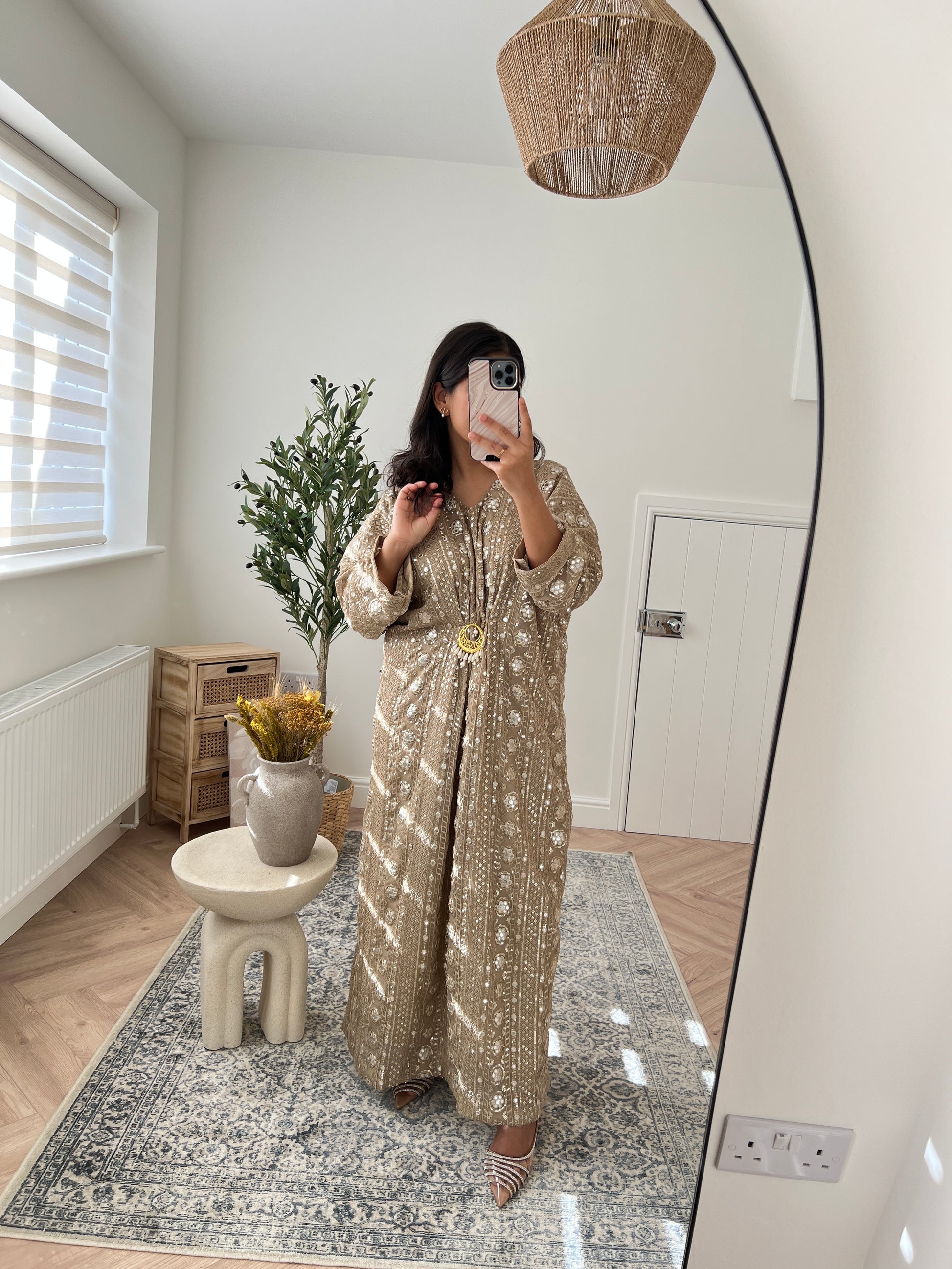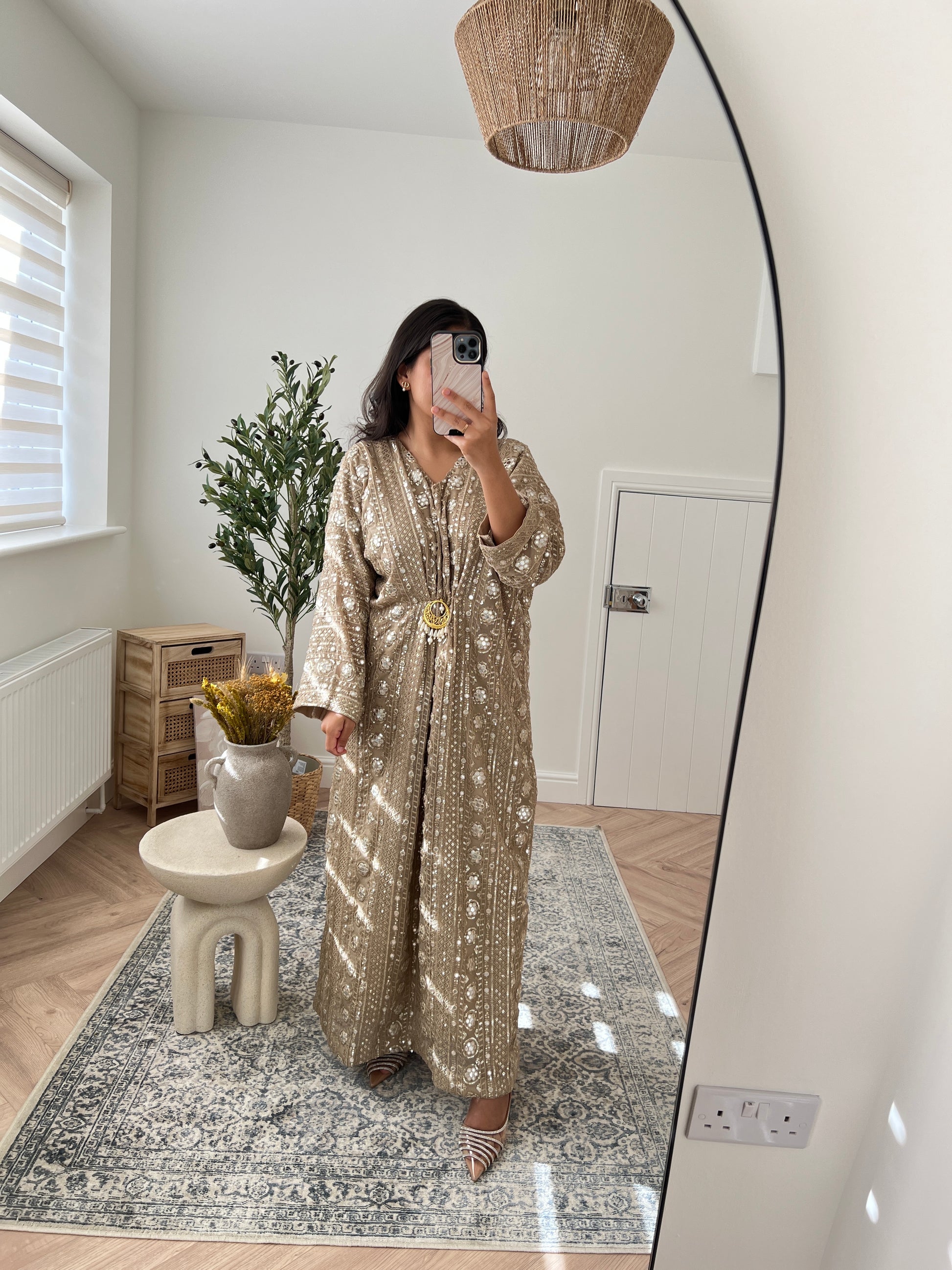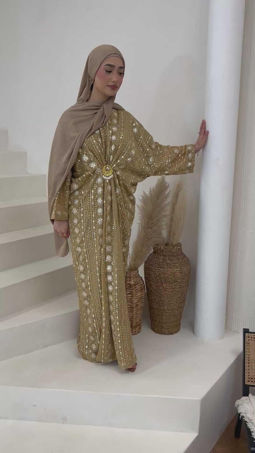Discover the Middle Eastern Modest Kaftan Infused with Pakistani Elegance.