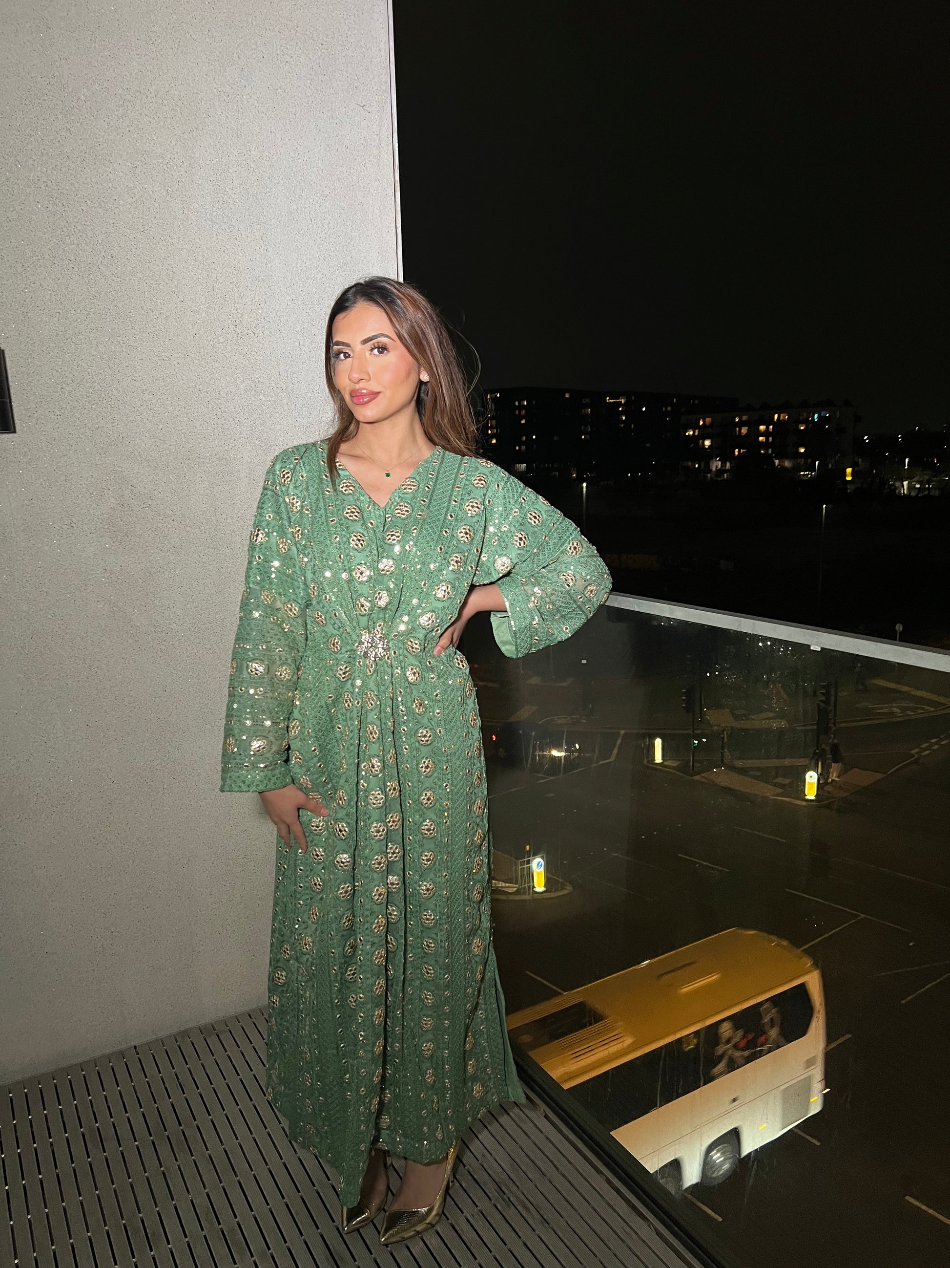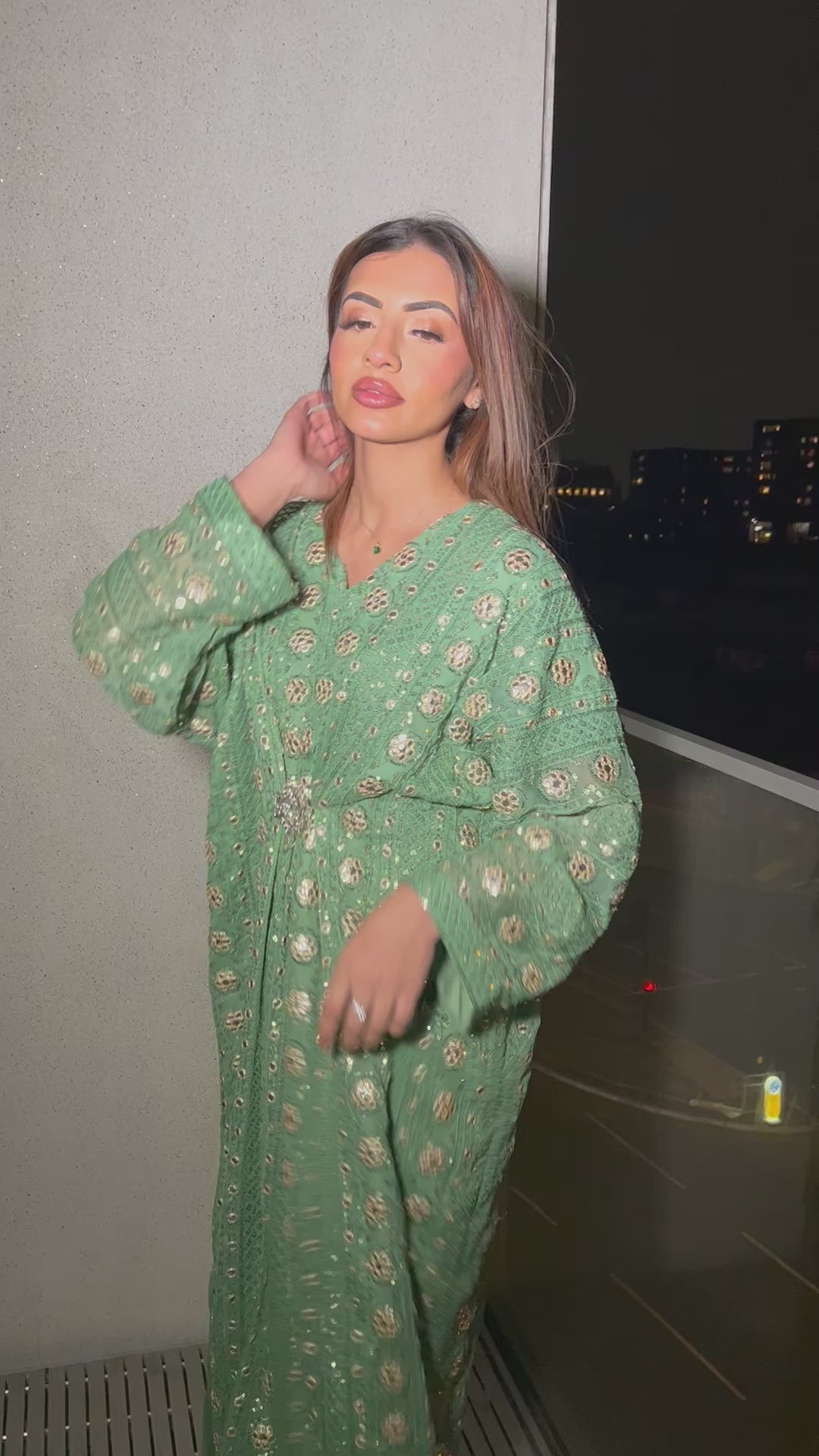 Embrace the artistry of adornment with our exquisite embellished kaftan (2 piece, trousers included). A symphony of intricate embellishments and flowing elegance, this kaftan captures the essence of luxury and style. Elevate your wardrobe with a touch of extravagance and let your inner radiance shine through.